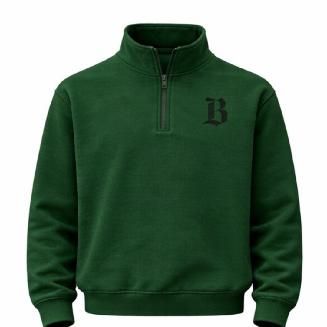 A luxury-grade quarter-zip fleece pullover designed for warmth, comfort, and long-term durability. Constructed from heavyweight brushed fleece with reinforced stitching and high-end trims. Features a 2.5-inch embroidered Bulletproof “B” logo on the left chest.